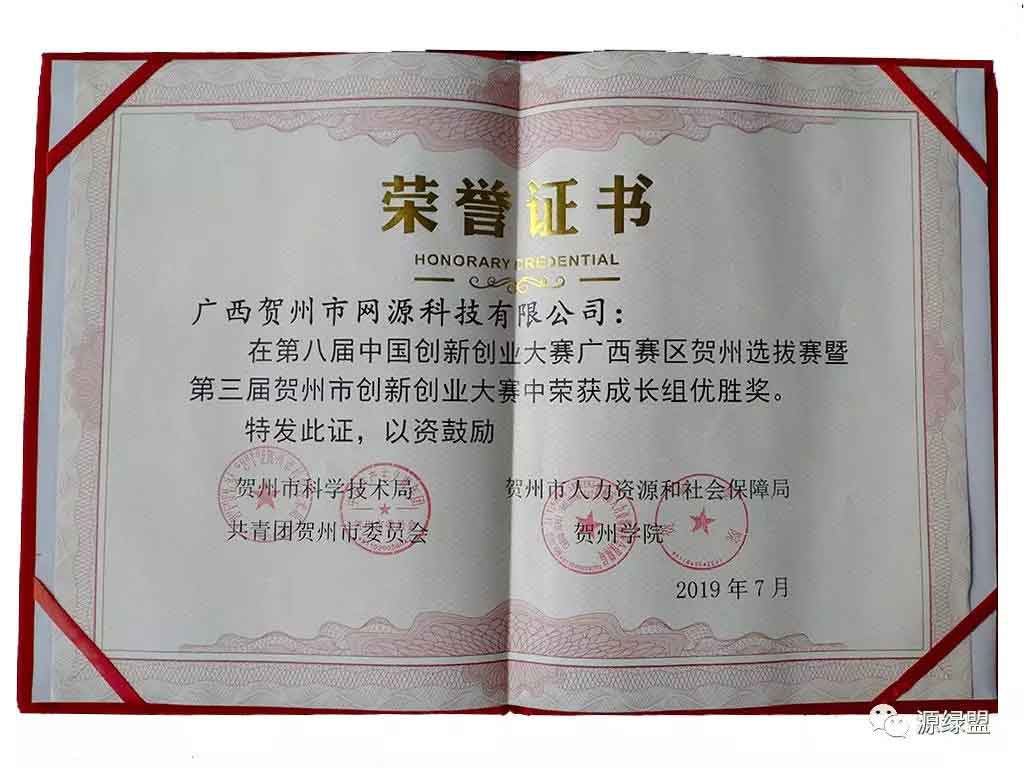 迎接祖国成立70周年,广西贺州市网源科技获得2019广西青年创业创新大赛总决赛商工组优秀奖,获得2019第八届中国创新创业大赛广西赛区贺州选拔赛暨第三届贺州市创新创业大赛中获得优胜奖